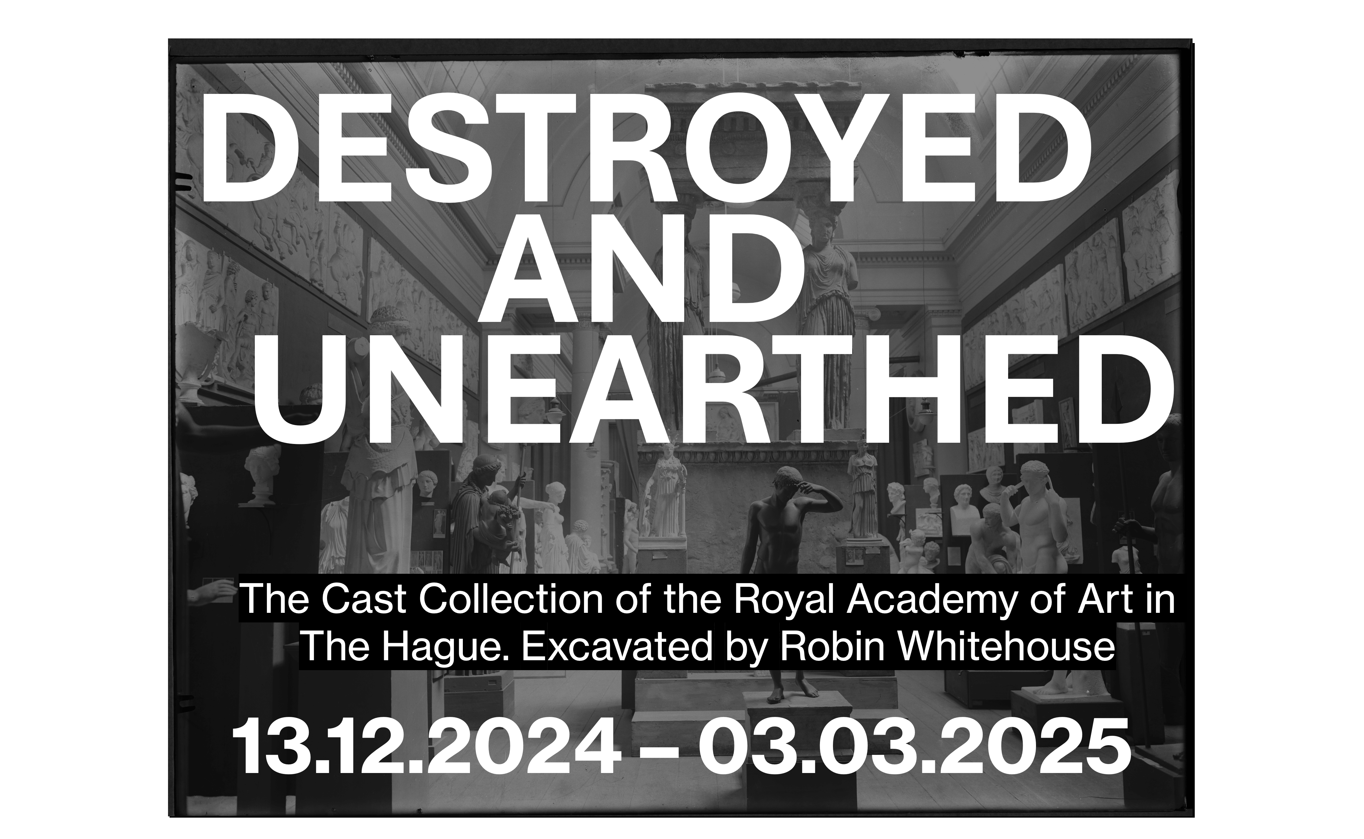 Subasements der Akademiegebäude vergraben. 2022 erfuhr Robin Phoenix Whitehouse, Student an der Kunstakademie in Den Haag, durch Zufall von der zerstörten Sammlung und begann sie systematisch auszugraben. Damit schuf er ein neues Bewusstsein für die Geschichte der Abgüsse in Den Haag. Er ging aber noch einen Schritt weiter. Er setzte viele der zerschlagenen Fragmente wieder zusammen, befestigte sie mit anderen Fragmenten auf Metallplatten und setzte sie in Rahmen. So entstanden ganz neuartige Assemblagen. Aus den archäologischen Funden wurde eine neue Kunst, die zugleich an die dramatische Geschichte der Objekte erinnert. Die Ausstellung in Berlin dokumentierte nicht nur diese Geschichte, sie präsentierte die eigentlich zerstörten Objekten auch – oder vor allem – als neue Kunstobjekte.